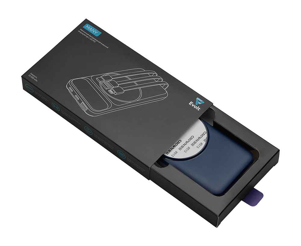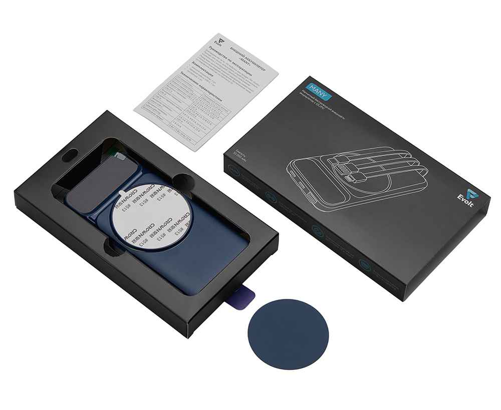 Подробнее о Evolt Магнитный беспроводной внешний аккумулятор со встроенными кабелями Мэни, 10000 мАч, 590164.72