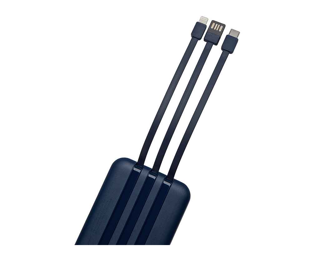 - Встроенные кабели (Lightning, USB-C, USB-A) — не нужно искать дополнительные кабели: зарядка других устройств и подзарядка аккумулятора происходят через встроенные кабели.