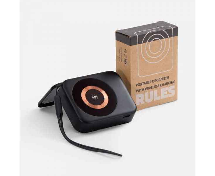 Rules — компактная станция для беспроводной зарядки, которая укомплектована набором переходников и аксессуарами для ухода за гаджетами.