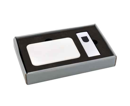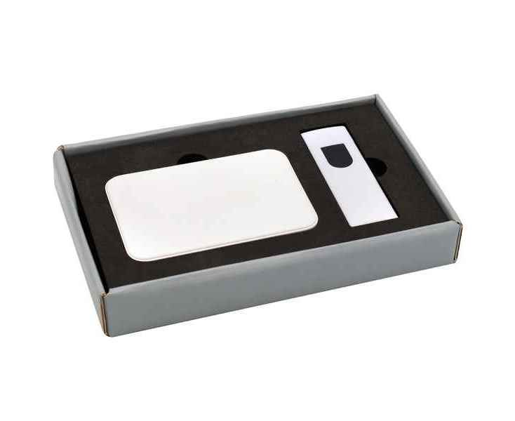 Подарочный набор в стильной цветной картонной коробке серого цвета (крышкой-дно). Внутри на аккуратном ложементе расположены внешний аккумулятор емкостью 5000 mAh и электронная зажигалка. Компактный и мощный внешний аккумулятор обеспечивает надежное подзаряжание мобильных устройств в любое время, а современная электронная зажигалка сочетает в себе удобство и безопасное использование без огня. Этот набор станет практичным и элегантным подарком для людей, ценящих функциональность и стиль.