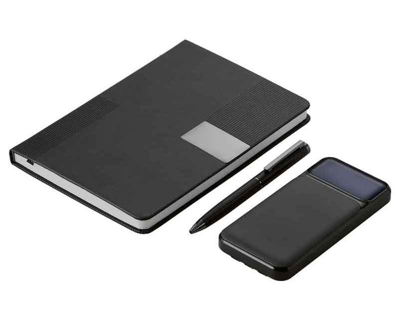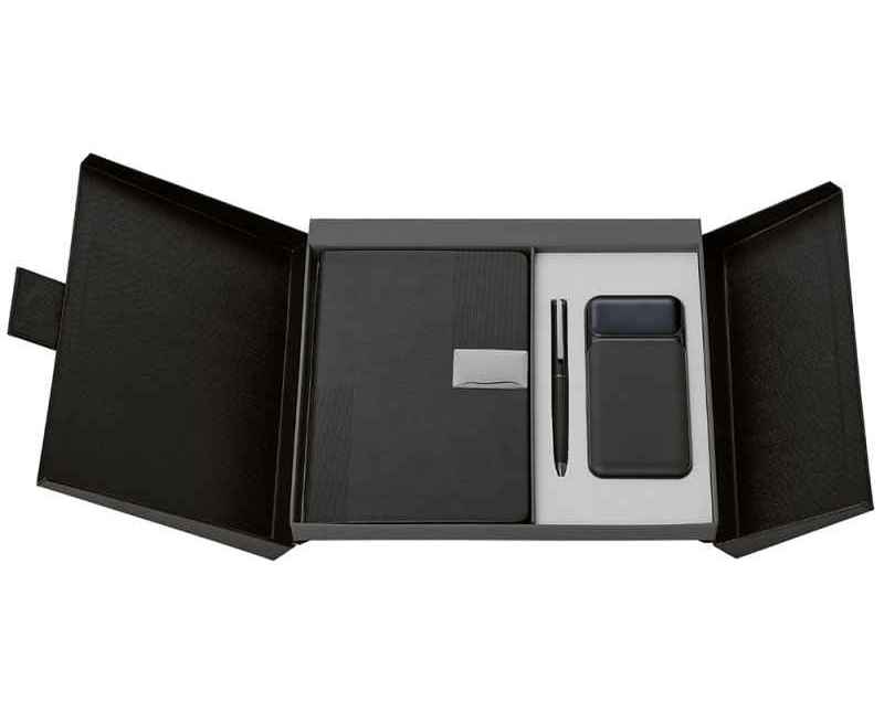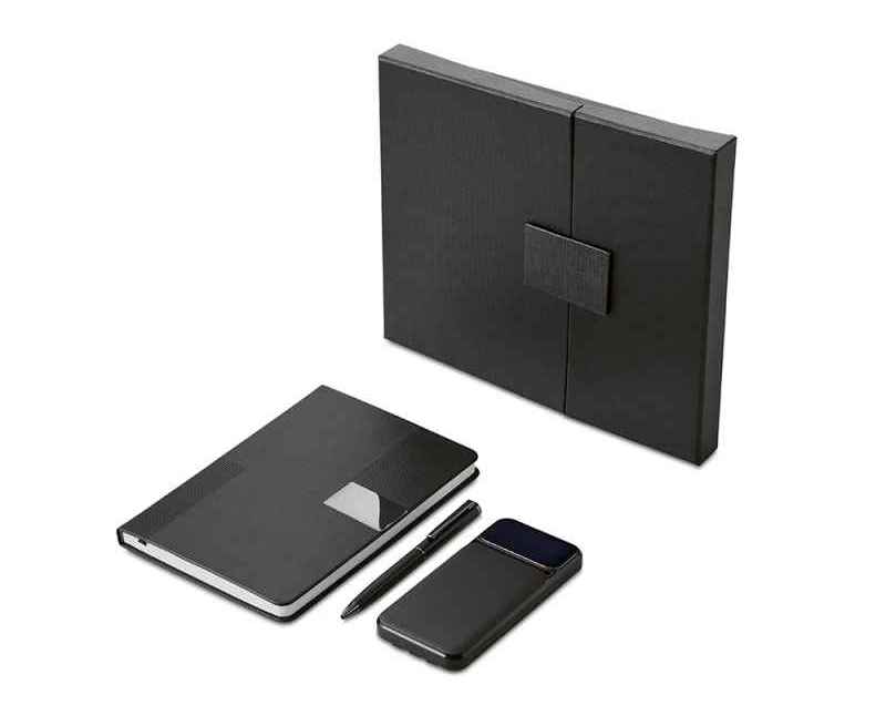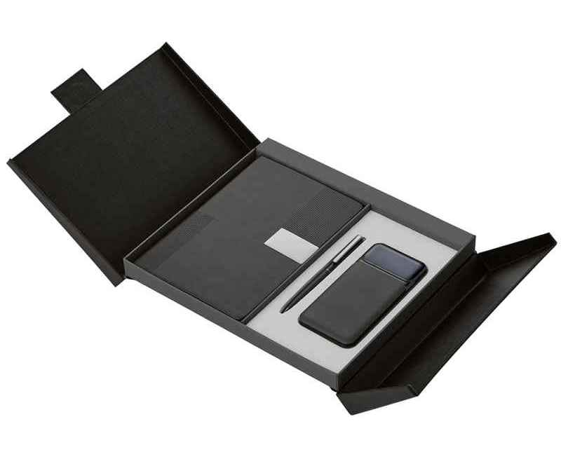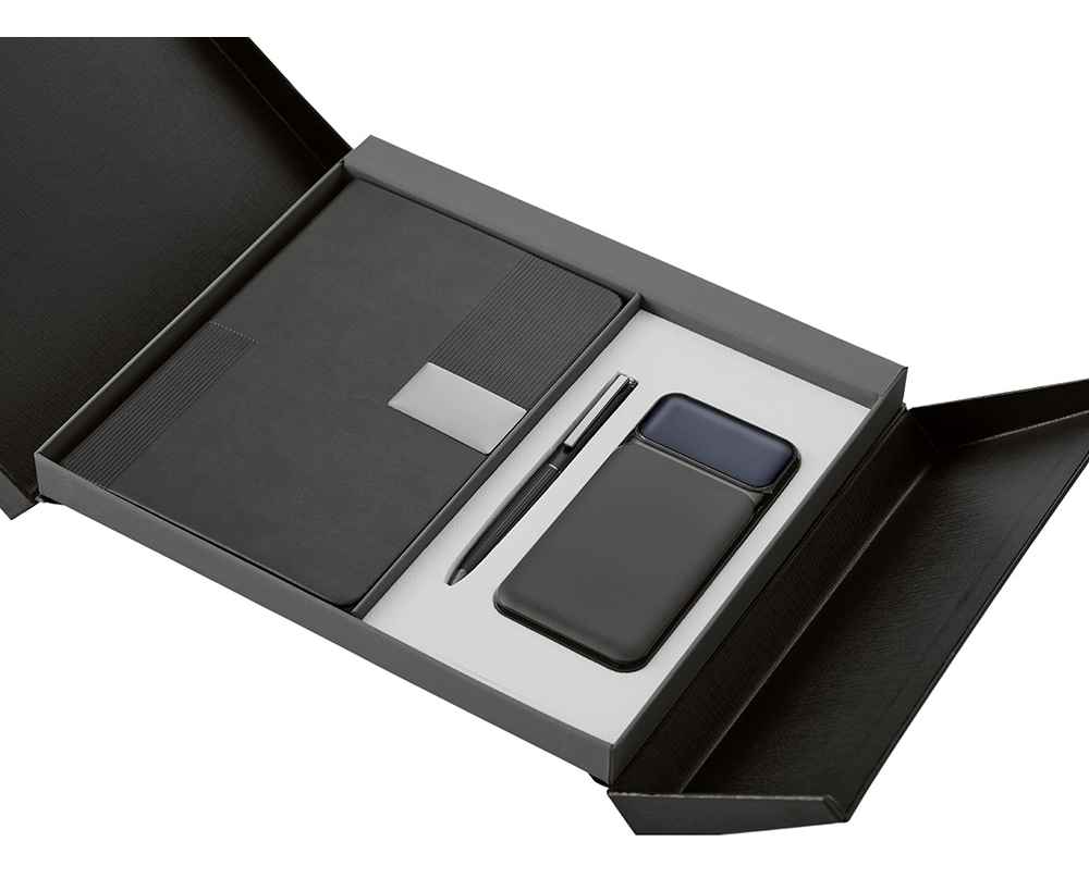Подарочный набор в элегантной коробке на магните —это практичный и красивый подарок, который точно пригодится в жизни. Внутри блокнот на 96 листов плотной бумаги 80 г/м² с FSC-сертификатом, металлическая шариковая ручка с синими немецкими чернилами Dokumental и швейцарским узлом Premec. Пауэрбанк на 10 000 mAh с 3 видами кабелей: Lightning, Type-C и USB обеспечит заряд в любой ситуации.
