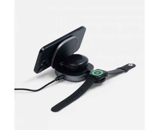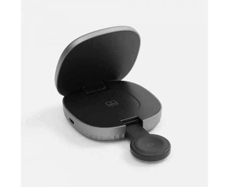 В сложенном состоянии площадки для зарядки смартфона и наушников расположены друг над другом, а зона зарядки умных часов убирается в специальный паз, поэтому станцию легко сложить в аккуратный бокс.