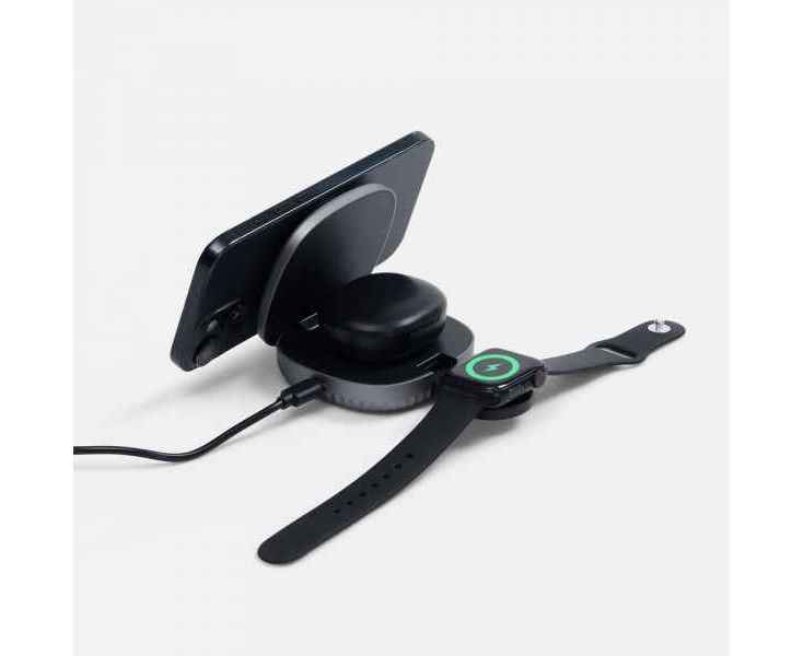 Зарядная станция совместима со всеми смартфонами, поддерживающими технологию беспроводной зарядки Qi. Также предусмотрено место для зарядки часов Apple Watch и наушников. Зарядка начнется автоматически при размещении устройств на индукционной площадке.