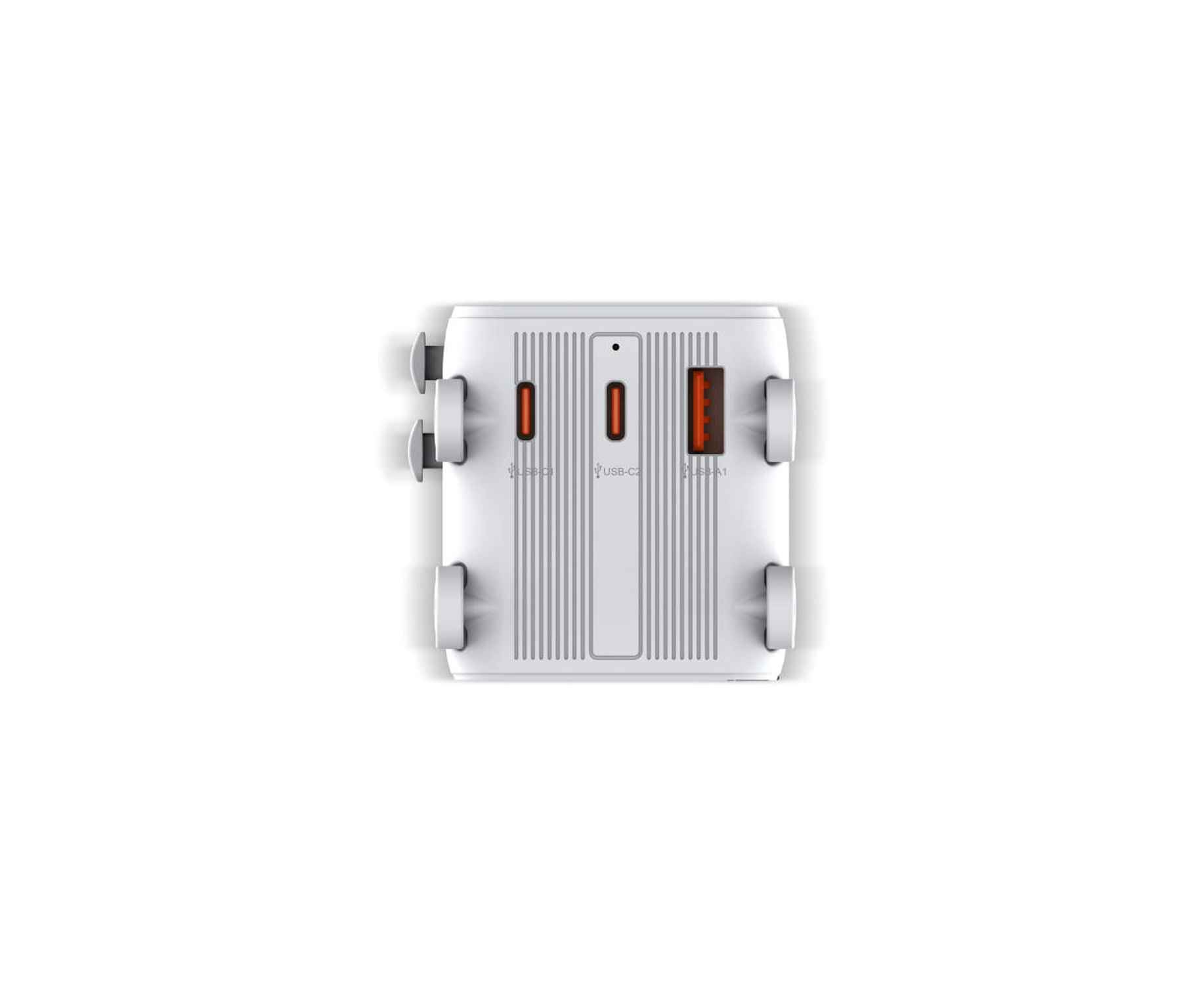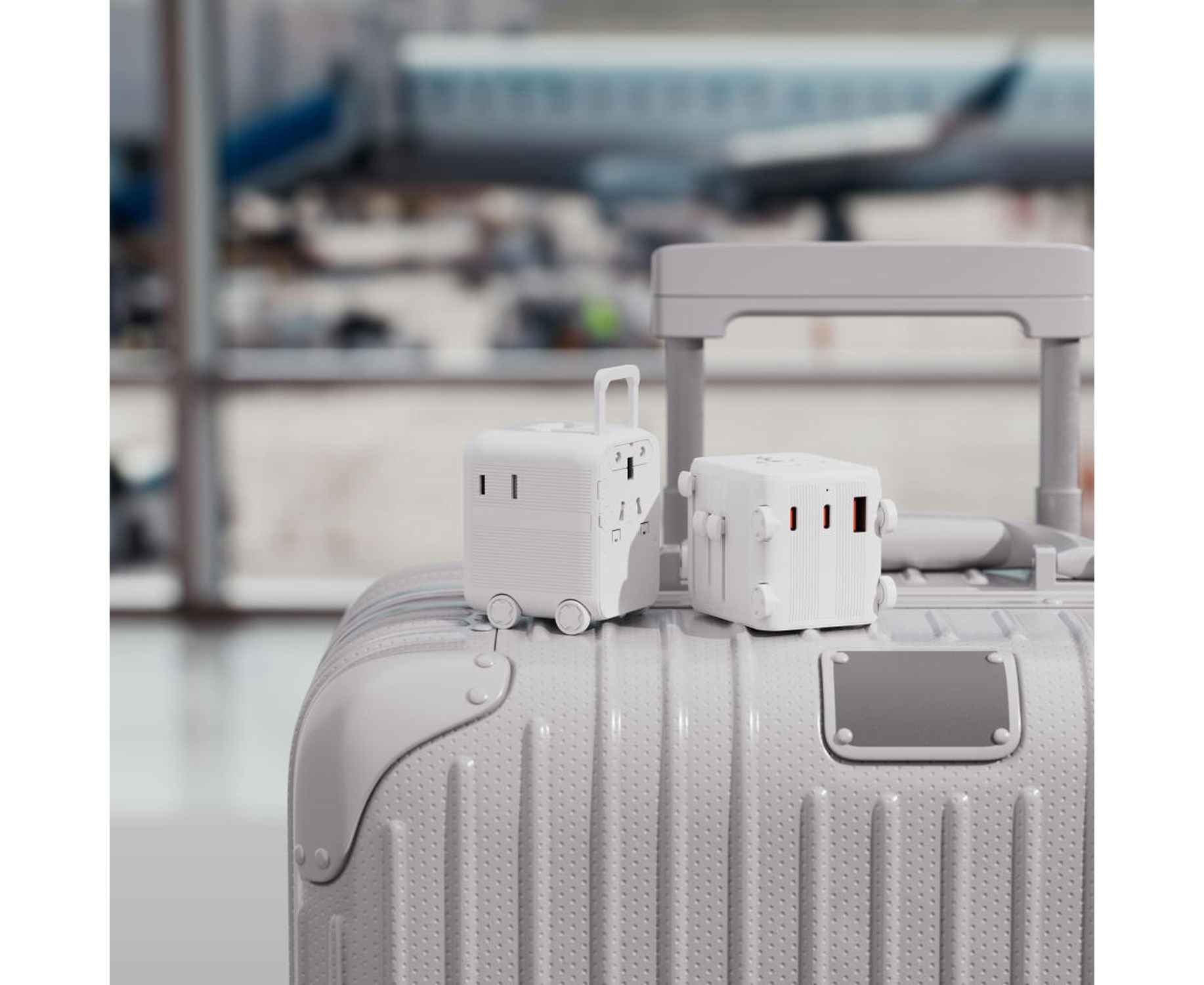 Благодаря уникальному дизайну в виде миниатюрного чемоданчика, Luggie — это универсальный адаптер сочетает в себе практичность и дух путешествий. Компактный и надежный, он работает более чем в 150 странах благодаря встроенным вилкам EU, UK, US и AUS. Оснащенный двумя портами USB-C (25 Вт, поддерживают быструю зарядку) и одним портом USB-A (15 Вт), он позволяет заряжать несколько устройств одновременно. Удобная кнопочная система обеспечивает легкое и быстрое переключение между типами вилок. Luggie — это умный аксессуар, который будет сопровождать вас везде: от коротких городских поездок до кругосветных путешествий, гарантируя, что вы всегда остаетесь на связи.