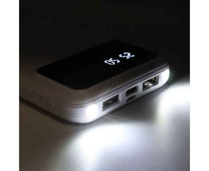 Компактный и портативный внешний аккумулятор. Максимально удобный и простой в использовании. Быстрое двойное нажатие включает или выключает фонарик. Особенности: 1. Индикатор остатка батареи (4 секции). 2. Вход: Micro USB 5V-2A(Max) USB и Type C. 3. Выход: USB 1, USB 2 (Можно заряжать 2 устройства одновременно) Выходное напряжение: 5V-2.1A(Max). Кабель Type-C в комплекте