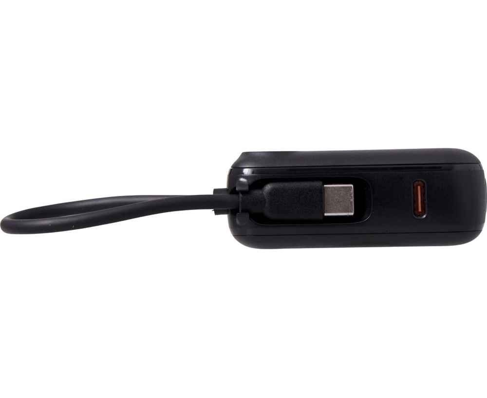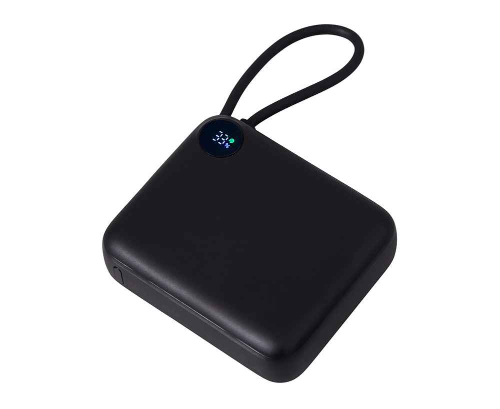 - Встроенный двунаправленный кабель-петелька USB-C — всегда под рукой! Заряжает смартфоны по USB-C (в т.ч. новые iPhone), а также заряжается сам по встроенному кабелю.