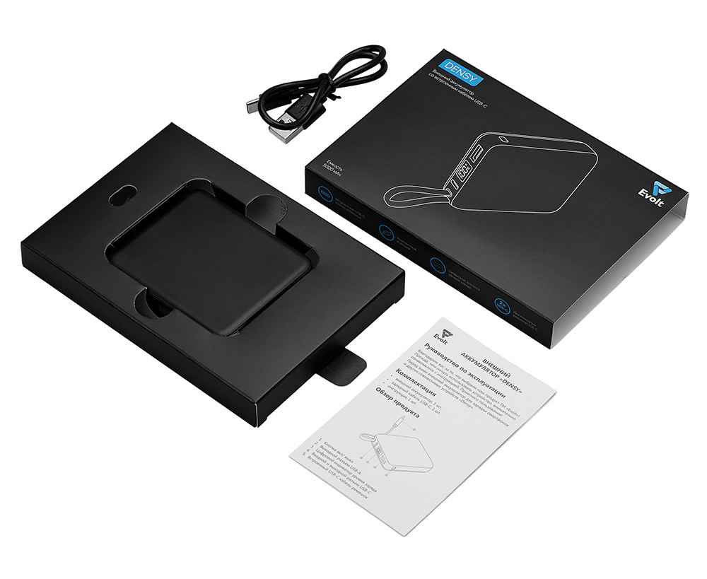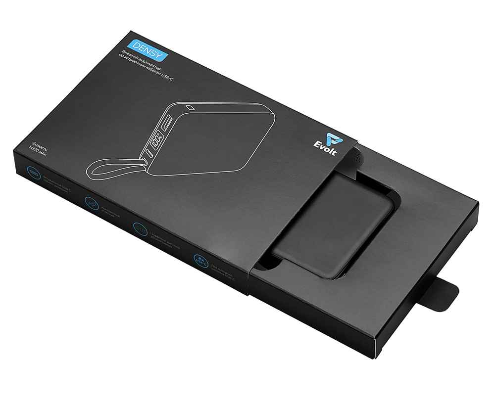 Подробнее о Evolt Внешний аккумулятор со встроенным кабелем USB-C Дэнси, 5000 мАч, 590160.07
