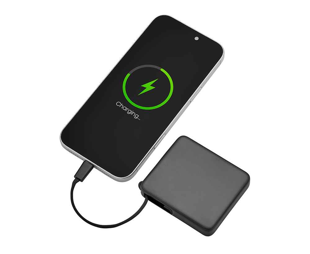 Современный внешний аккумулятор сочетающий стиль и удобство использования . Его миниатюрная квадратная форма легко помещается в карман или сумку, обеспечивая мобильность даже в самых напряженных рабочих буднях. Компактный корпус из прочного АБС-пластика позволяет нанести логотип с максимальной видимостью на любой из двух сторон. Встроенный кабель-ремешок с универсальным разъёмом USB типа С делает устройство практичным решением за счёт отсутствия необходжимости носить кабель с собой.