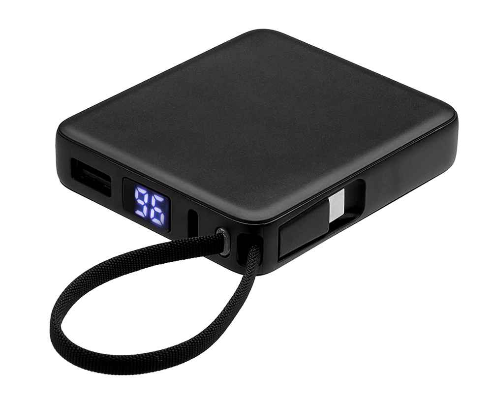 - Встроенный кабель-петелька: Заряжайте устройства в любой момент без поиска провода.