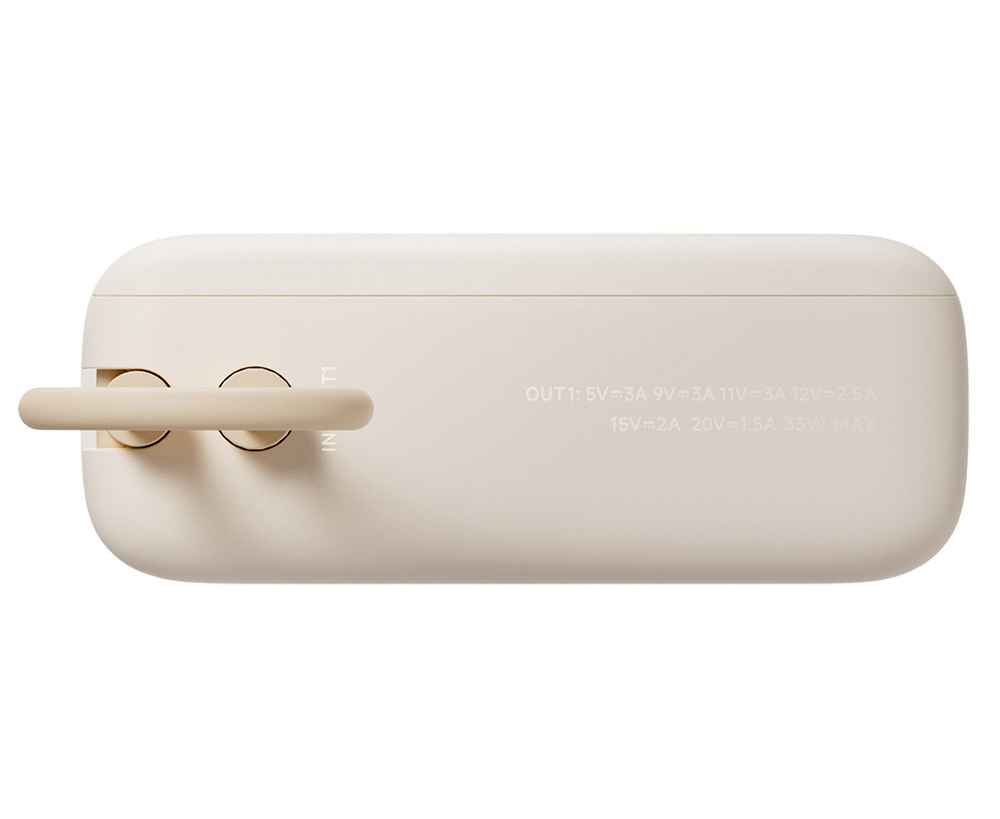 Пауэрбанк поддерживает двустороннюю быструю зарядку до 22,5 Вт, что позволяет быстро заряжать как смартфоны и планшеты, так и сам аккумулятор. Встроенный кабель USB‑C дополнен дополнительными портами (USB‑C и USB‑A), обеспечивая возможность одновременной зарядки нескольких устройств.