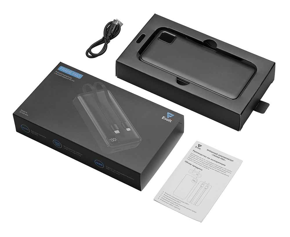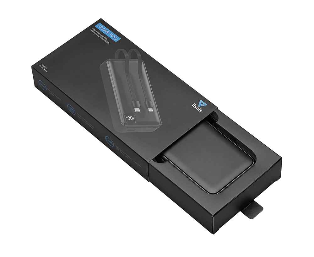 Подробнее о Evolt Внешний аккумулятор со встроенными кабелями Фрэйм Про, быстрая зарядка, 20000мач, 590172.07