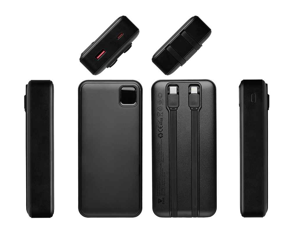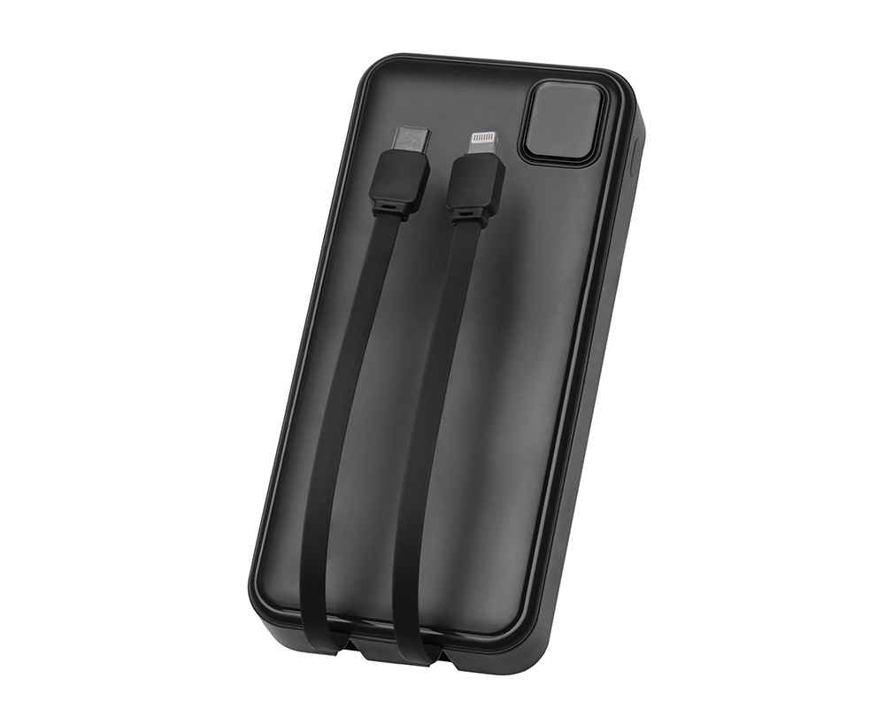 Удобный внешний аккумулятор с функцией быстрой зарядки и встроенными кабелями USB-C (симметричный разъём USB тип С) и Lightning (разъём в ранних версиях iPhone) — ваш надежный партнер в путешествиях, на встречах и в повседневных задачах. Цифровой дисплей в реальном времени показывает точный остаток заряда и статус быстрой зарядки, а встроенные кабели и несколько разъемов позволяют заряжать до 4 устройств. Прочный корпус из переработанного АБС-пластика и емкость 20000 мАч обеспечивают зарядом все ваши устройства на долгий срок. Идеальный выбор для тех, кто ценит комфорт и функциональность в одном устройстве. Продуманная упаковка: для открытия просто потяните за язычок, и появится гаджет с нанесением.