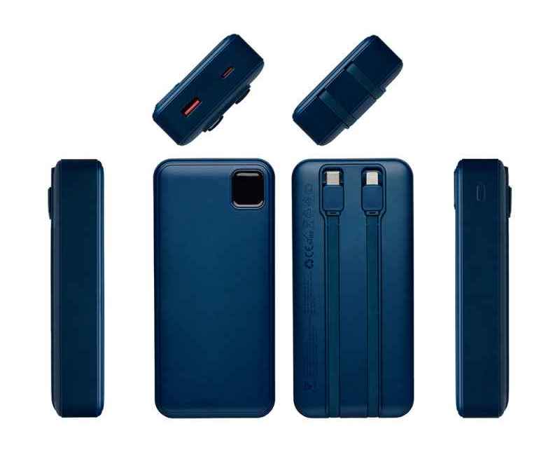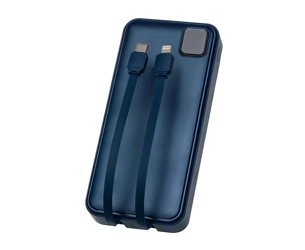 Удобный внешний аккумулятор с функцией быстрой зарядки и встроенными кабелями USB-C (симметричный разъём USB тип С) и Lightning (разъём в ранних версиях iPhone) — ваш надежный партнер в путешествиях, на встречах и в повседневных задачах. Цифровой дисплей в реальном времени показывает точный остаток заряда и статус быстрой зарядки, а встроенные кабели и несколько разъемов позволяют заряжать до 4 устройств. Прочный корпус из переработанного АБС-пластика и емкость 20000 мАч обеспечивают зарядом все ваши устройства на долгий срок. Идеальный выбор для тех, кто ценит комфорт и функциональность в одном устройстве. Продуманная упаковка: для открытия просто потяните за язычок, и появится гаджет с нанесением.