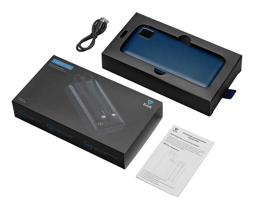 Подробнее о Evolt Внешний аккумулятор со встроенными кабелями Фрэйм Про, быстрая зарядка, 20000мач, 590172.72