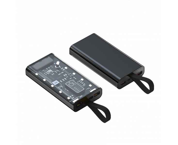 Портативный аккумулятор емкостью 10 000 мАч — это не просто источник энергии, а стильное и футуристичное устройство, которое выделяется своей уникальной конструкцией. Одна часть корпуса выполнена из прозрачного материала, через который прекрасно просматривается современная электронная плата и индикатор заряда батареи, создавая эффект технологичного модуля будущего.