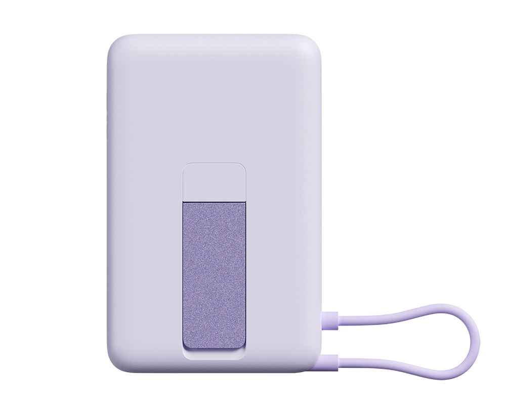 Главная особенность модели — встроенная регулируемая подставка с углом раскрытия до ~80°, которая позволяет комфортно смотреть видео, общаться по видеосвязи или работать со смартфоном во время зарядки.