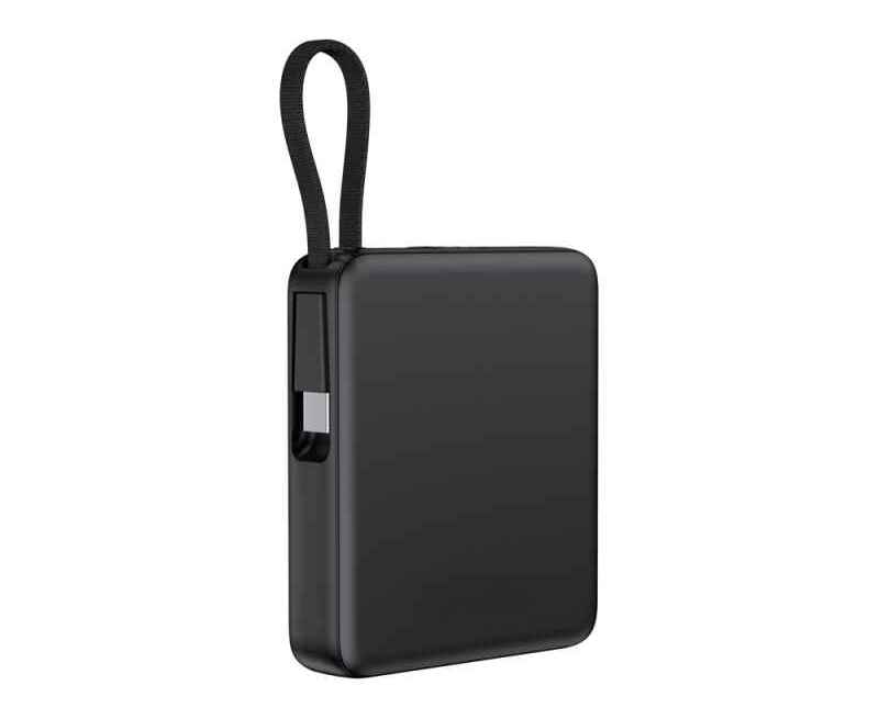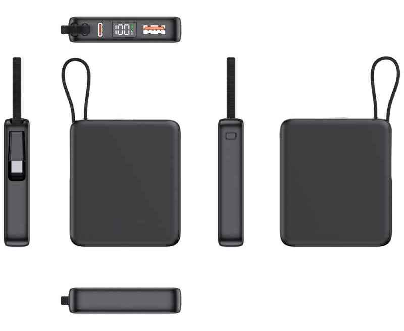 - Встроенный кабель Type-C и он же петелька для переноски: Современный стандарт Type-C, подходящий для зарядки всех последних популярных смартфонов, включая iPhone. Кабель также выполняет роль удобной петельки