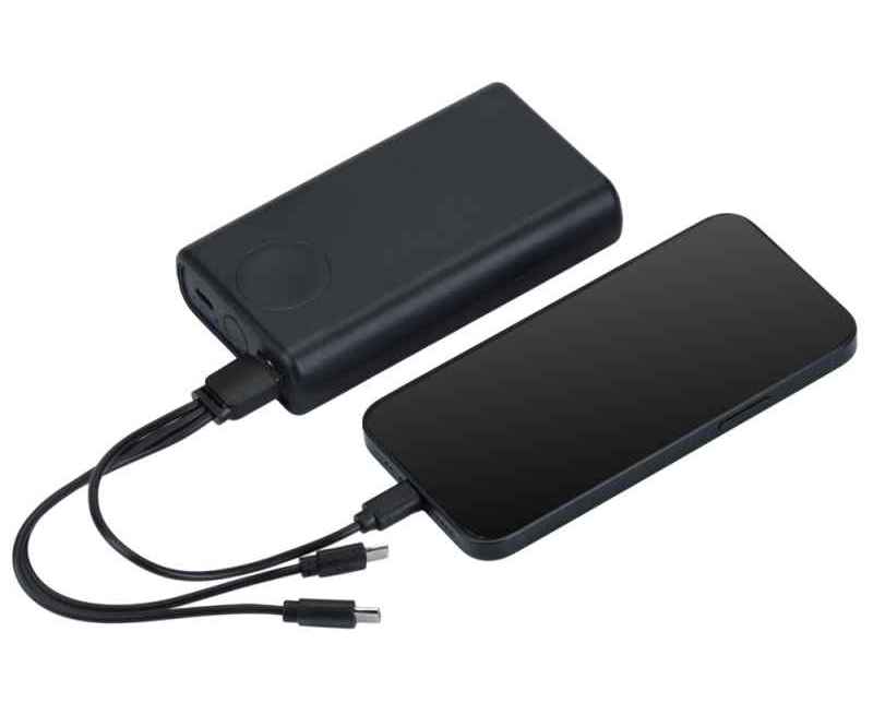 • Кабель быстрой зарядки в комплекте: повербанк поставляется с фирменным кабелем, поддерживающим быструю зарядку, что делает использование максимально удобным.