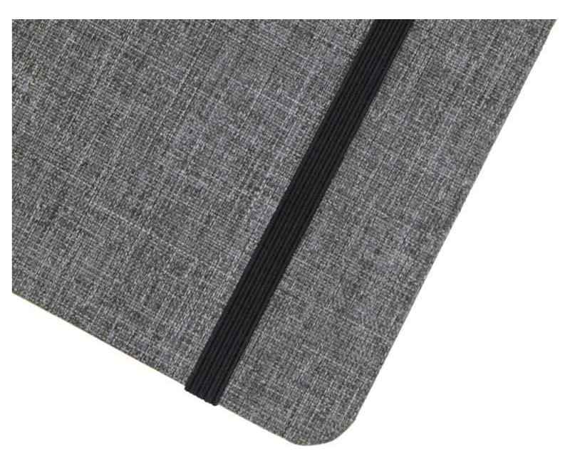 Блокнот формата А5 с отделкой из переработанного ПЭТ. Содержит 96 листов в линию плотностью 70 г/м², изготовленных из переработанной бумаги, с петлей для ручки и лентой-закладкой. В упаковке из картона.