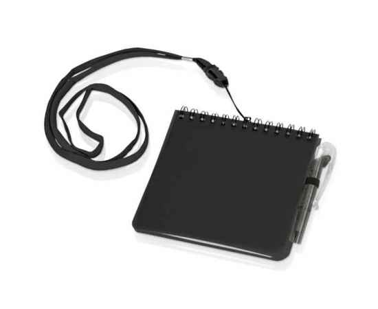 Яркий блокнот с шариковой ручкой можно носить на шее благодаря специальному ремешку (45 см). Отличный промо-сувенир, на обложку которого можно нанести логотип.