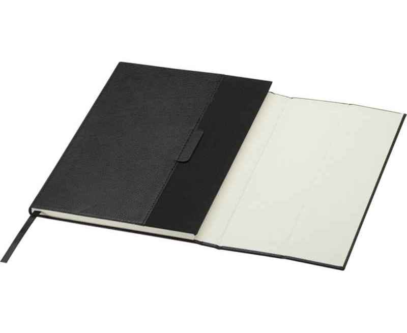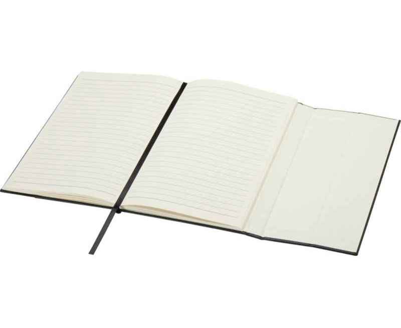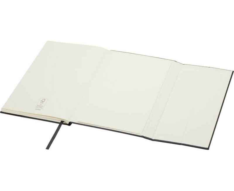Блокнот Alejandra формата A5 в твердой обложке изготовлен из переработанного полимерного и PET-пластика с 80 линованными листами кремовой бумаги плотностью 70 г/м², а также оснащен ленточкой-закладкой и карманом-гармошкой.