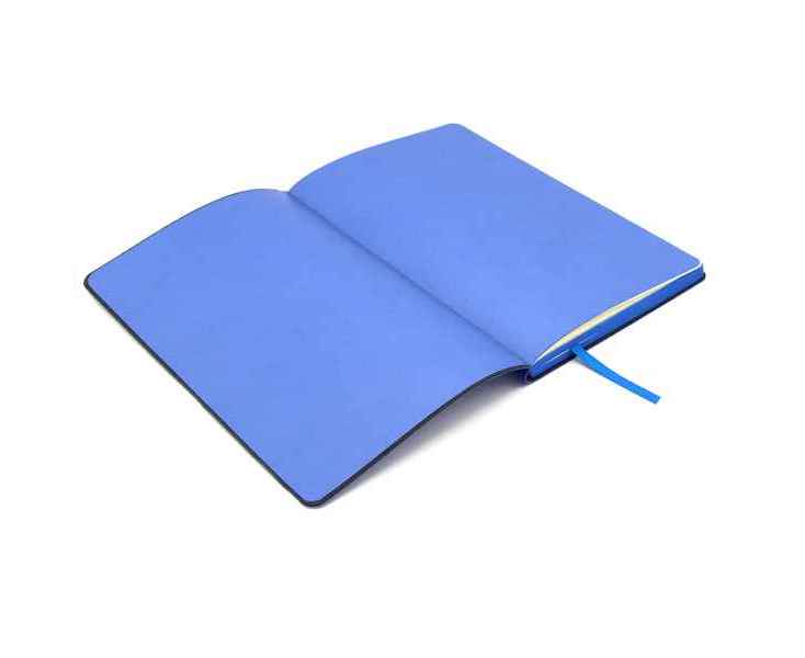 Блокнот формата А5 в мягкой обложке из искусственной кожи. Материал обложки - полиуретан. Размеры: 213*143мм, 96 листов, разлинееные страницы, бумага плотностью 70г/м2, срез прокрашен в цвет обложки. Ляссе в цвет обложки.