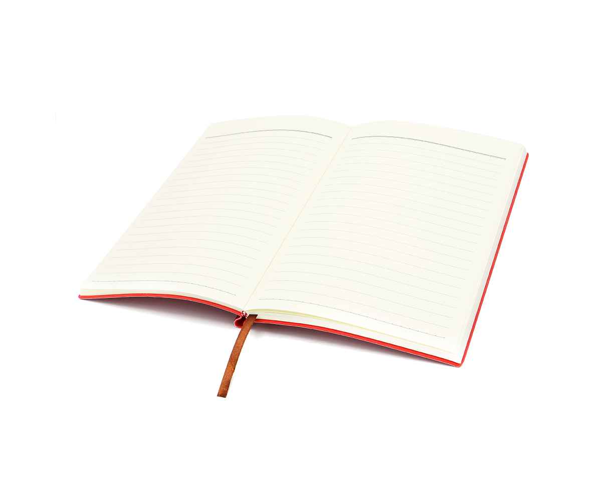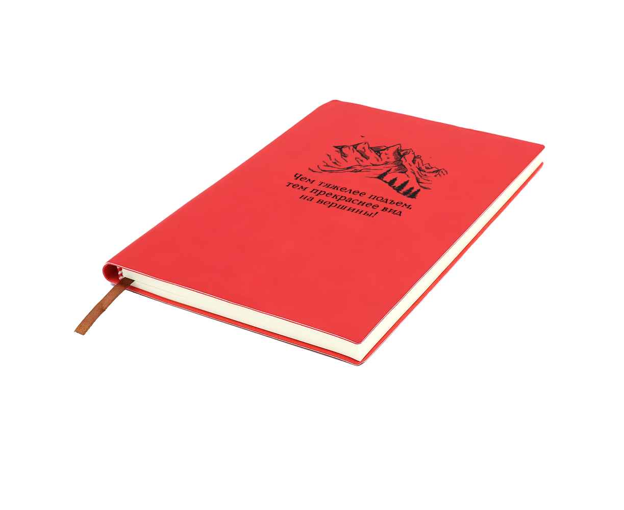 Блокнот формата А5 в мягкой обложке из искусственной кожи. Материал обложки — полиуретан. Текстура — гладкая с эмитацией натуральной кожи. Для удобства переноски ручки в корешке блокнота присутствует ниша, к которой ручка крепится за клип.