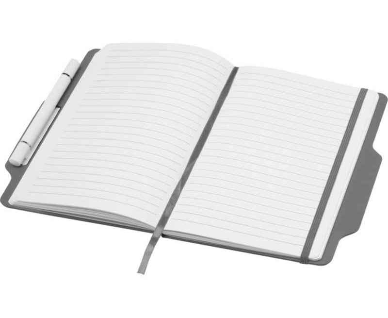 Блокнот Nexus формата A5 в твердой обложке с ручкой/карандашом, с 80 кремовыми линованными листами бумаги плотностью 70 г/м², с закругленными углами, эластичной застежкой и ленточным маркером. Ручка двухсторонняя: одна сторона — ручка с черными чернилами, а другая — карандаш. Длина непрерывной линии ручки: 1000 метров. Размер пера: 1,00 ММ. FSC certified paper, PU Plastic.