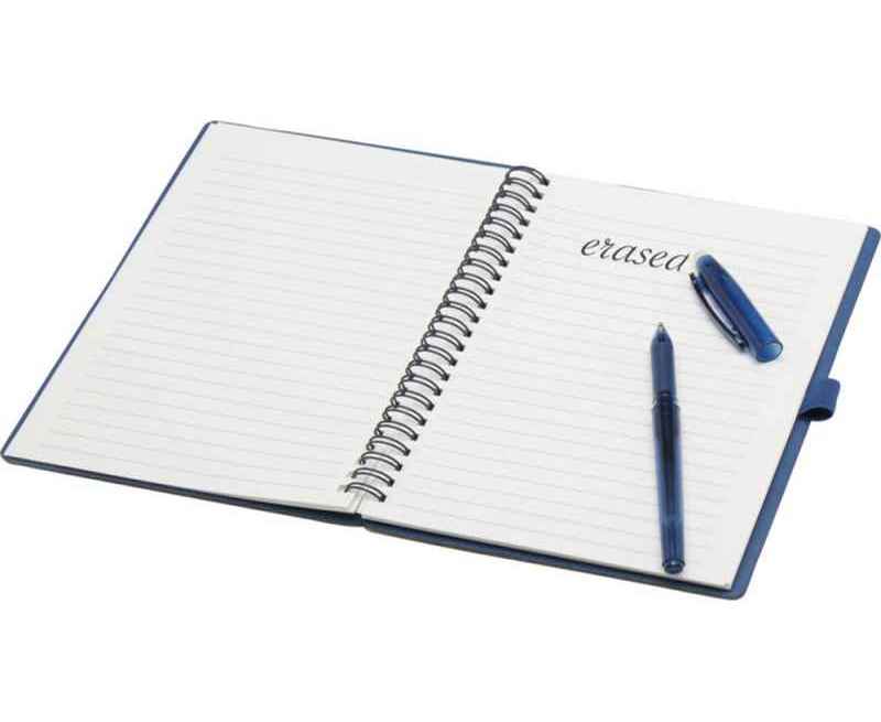 Многоразовый набор из ручки и блокнота в мягкой обложке из каменной бумаги. Блокнот имеет обложку из картона, закругленные углы и 32 листа линованной бумаги плотностью 120 г/м². В производстве каменной бумаги не используется дерево, а на сам процесс изготовления затрачивается гораздо меньше энергии в сравнении с производством переработанной или целлюлозной бумаги. Сзади имеется карман для хранения черной протирочной ткани (входит в комплект). Ручка из переработанного пластика с стираемыми чернилами, прозрачным корпусом, белым ластиком сверху и однотонной цветной рукояткой. Цвет чернил: черный. Длина непрерывной линии: 250 метров. Размер пера: 0,7 мм.
