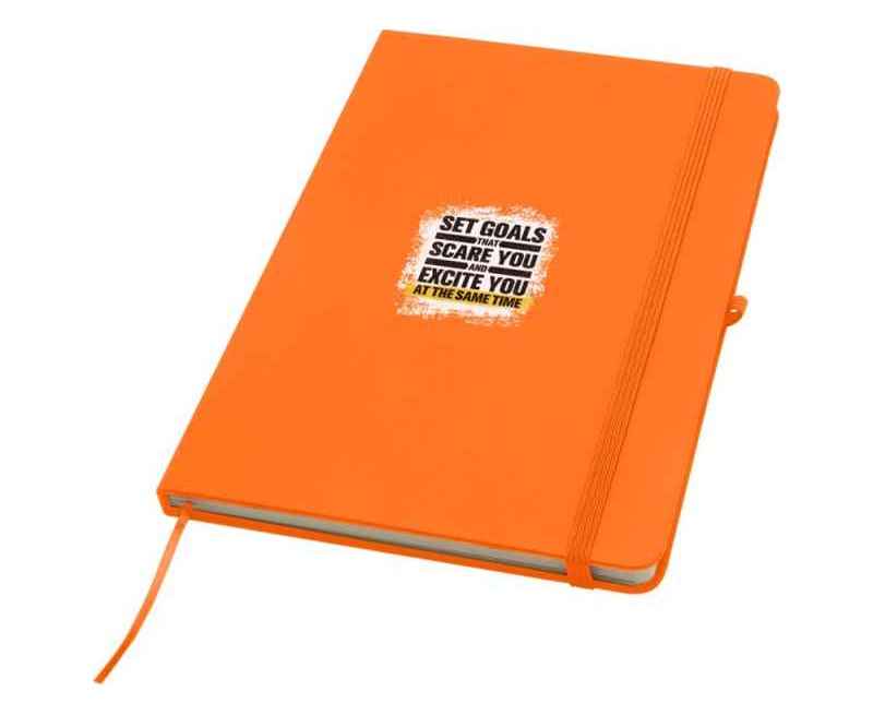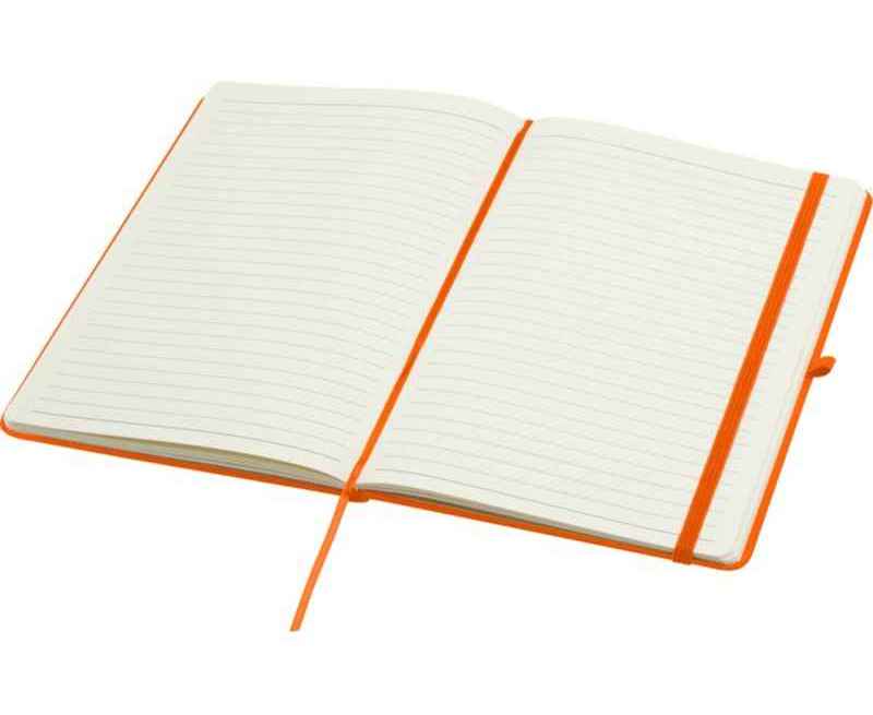 Блокнот Spectrum Plus формата А5 в твердой обложке с закругленными углами — это не только необходимая вещь в офисе, но и прекрасная возможность для продвижения вашего бренда. Картонный блокнот имеет мягкую на ощупь обложку и 80 линованных листов кремового цвета плотностью 70 г/м², идеально подходит для записи быстрых идей или длинных заметок. Блокнот оснащен петлей для ручки, эластичной застежкой, ленточкой-закладкой и карманом-гармошкой.