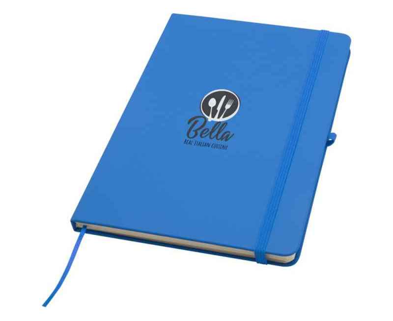 Блокнот Spectrum Plus формата А5 в твердой обложке с закругленными углами — это не только необходимая вещь в офисе, но и прекрасная возможность для продвижения вашего бренда. Картонный блокнот имеет мягкую на ощупь обложку и 80 линованных листов кремового цвета плотностью 70 г/м², идеально подходит для записи быстрых идей или длинных заметок. Блокнот оснащен петлей для ручки, эластичной застежкой, ленточкой-закладкой и карманом-гармошкой.