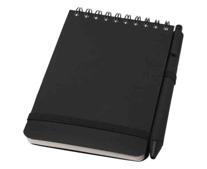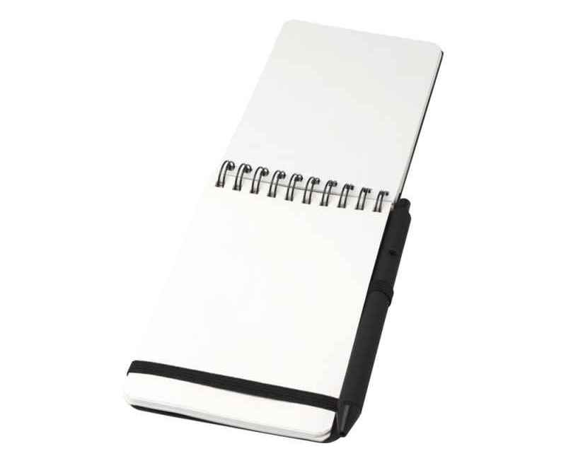 Блокнот Thalaasa формата А6 в твердой обложке изготовлен из переработанного океанического пластика и содержит 80 линованных листов кремовой бумаги плотностью 70 г/м². Блокнот имеет закругленные углы, эластичную застежку и петлю для ручки. Шариковая ручка с черными чернилами также изготовлена из переработанного океанического пластика. Длина непрерывной линии: 1000 метров. Размер пера: 1,0 мм.