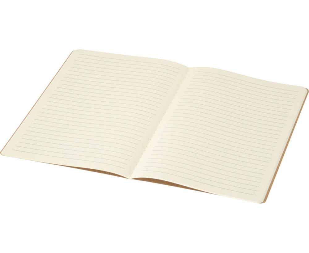 Блокнот Slyk формата A5 имеет минималистичную обложку из крафт-картона с закругленными углами и видимой строчкой на корешке, что создает ощущение ручной работы. Имеет 32 листа в линейку кремового цвета, изготовленных из бумаги плотностью 70 г/м². Компактный формат A5 делает это изделие практичным вариантом для заметок на ходу, поскольку он легко помещается в большинство сумок.