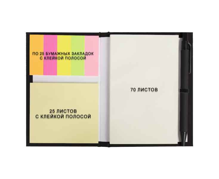 Подробнее о Monogramma Блокнот А6 Stick and go с ручкой и набором стикеров в твердом переплете, размер 11*14,5*1 см, черный