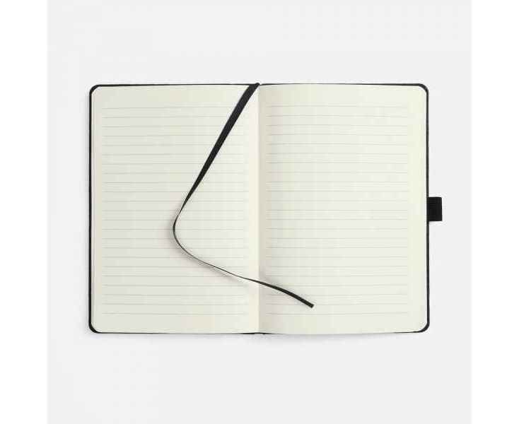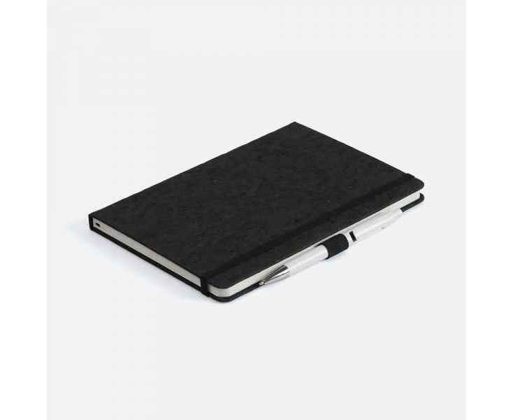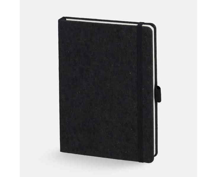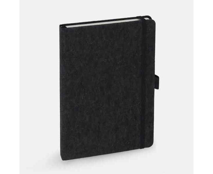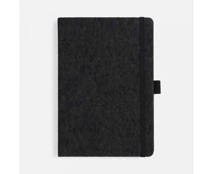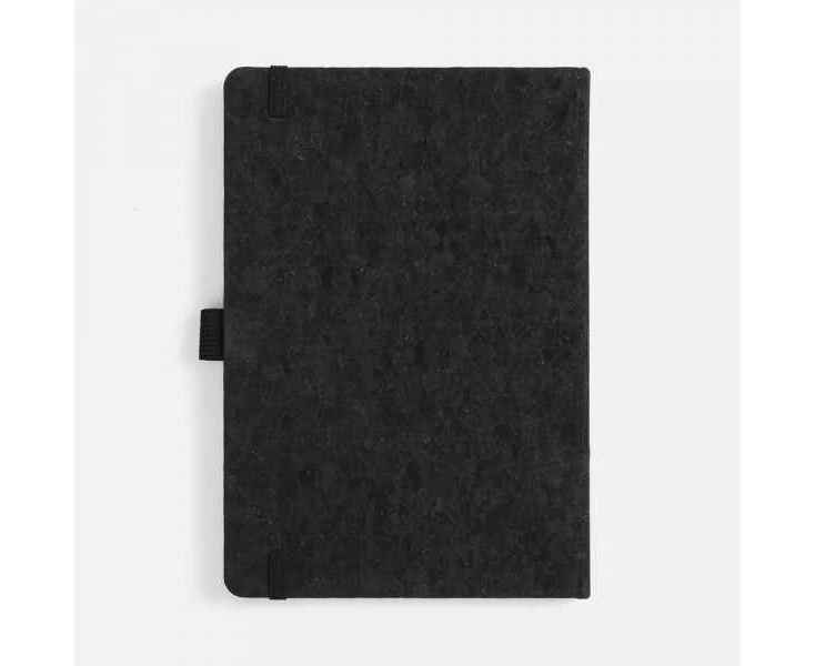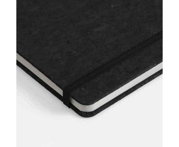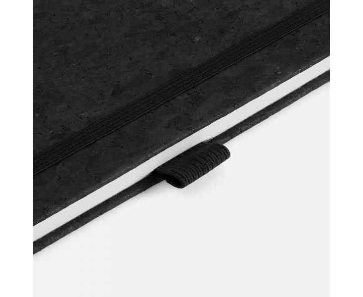 Блокнот с твердой обложкой из натуральной окрашенной пробки, дополнен петлей-резинкой для ручки, ляссе и резинкой в цвет обложки.