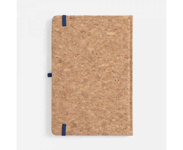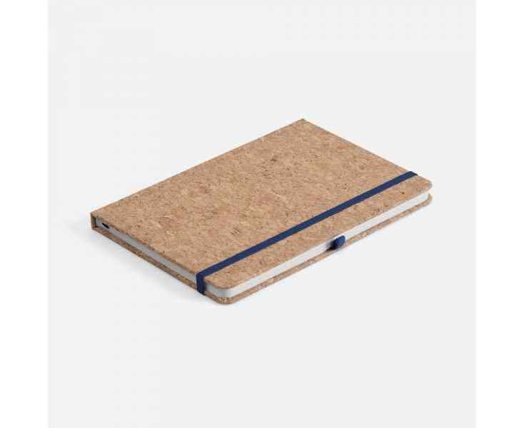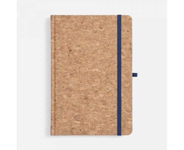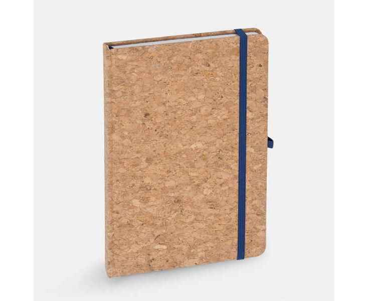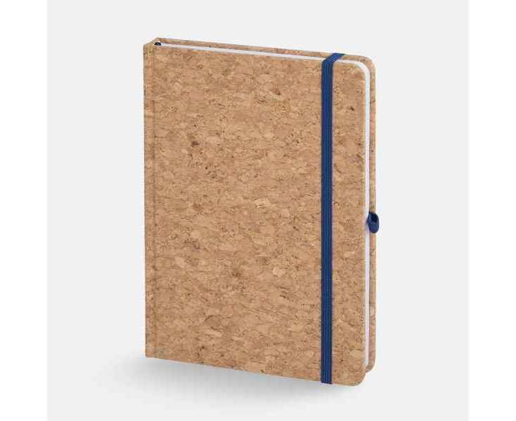 Блокнот в твердой обложке из натуральной неокрашенной пробки, дополнен цветными петлей-резинкой для ручки, ляссе и резинкой на обложку.