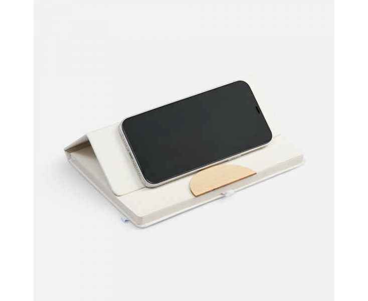 Но особенно практичным Enviro делает его оригинальная обложка со складной конструкцией: благодаря ей и деревяной вставке сбоку блокнот удобно использовать как подставку для телефона.