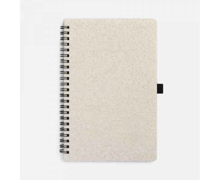 Блокнот на спирали из пшеничной соломы с резинкой для ручки.
