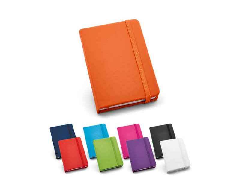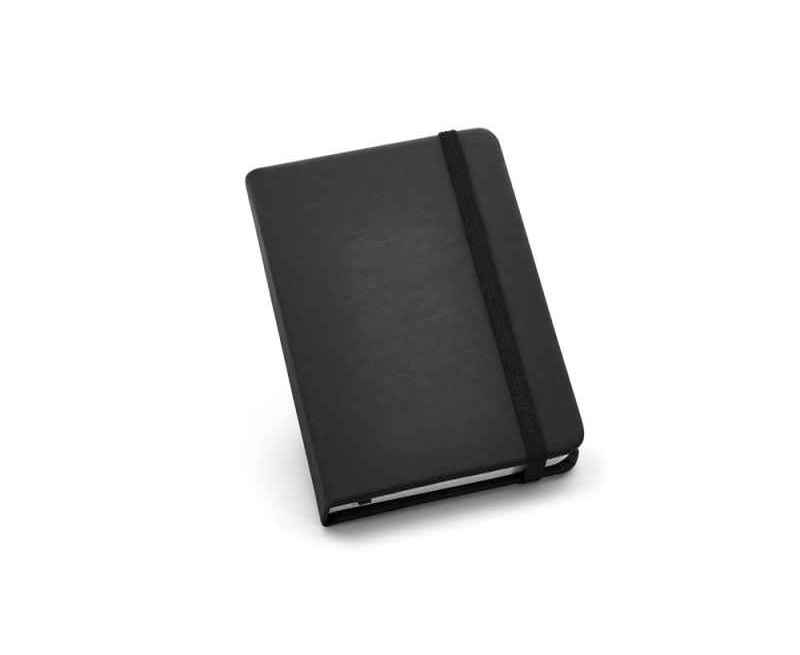 Карманный блокнот на 160 страниц в линейку с твердой обложкой из искусственной кожи, с разделительной лентой и резинкой. 90 x 140 мм