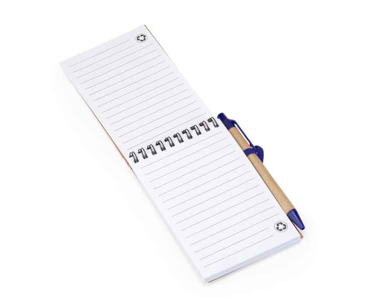 Блокнот на спирали с твердой обложкой из переработанного картона с эластичной застёжкой. Листы немелованные, бело-лунного оттенка, в линейку. В комплект входит подходящая ручка с синими чернилами. 70 листов.