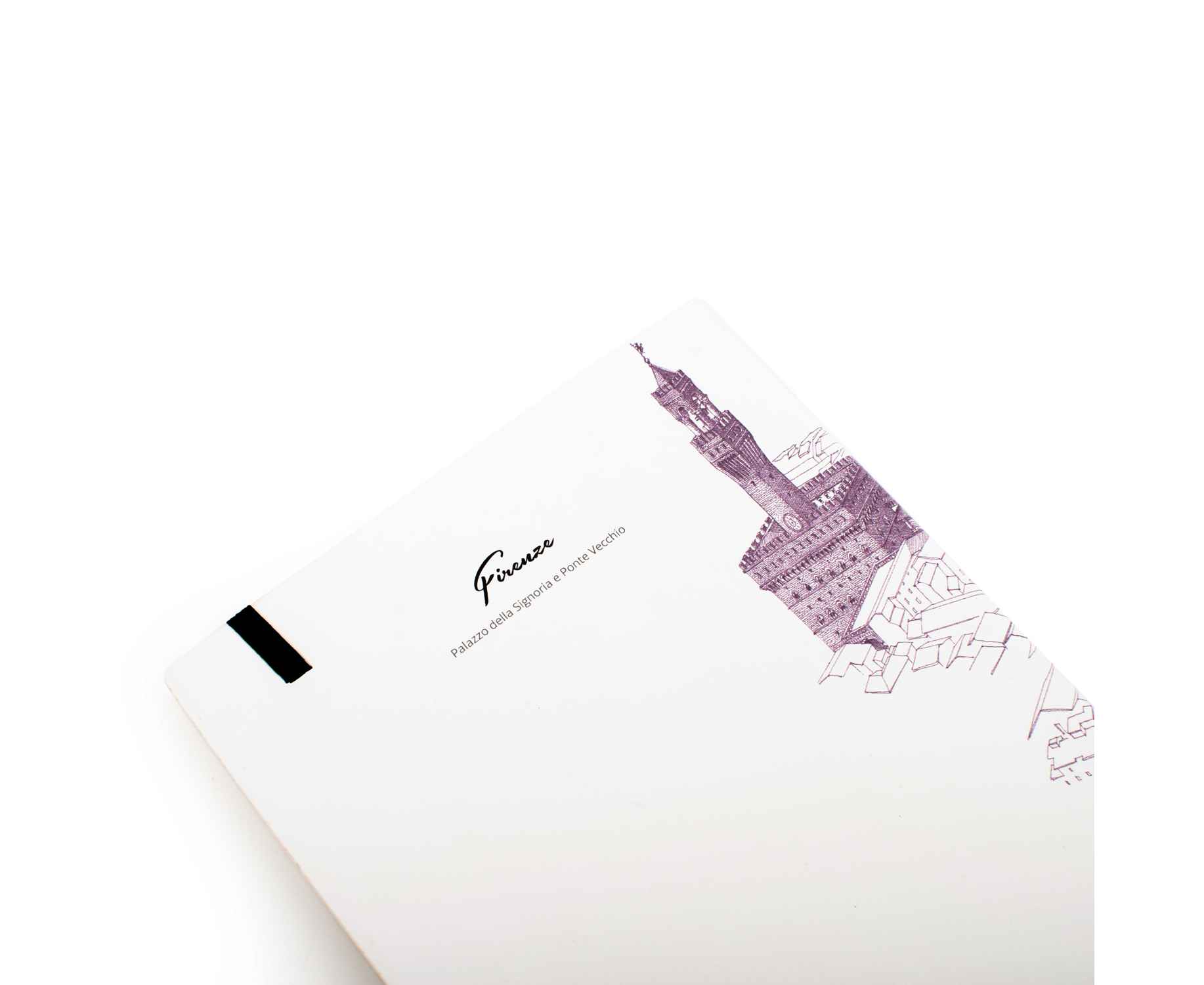 Тетрадь с листами из каменной бумаги Флоренция из специальной коллекции Italian Beauty дизайнеров Pininfarina в сотрудничестве с Francesco Corni Foundation, посвященной красоте Италии. Франческо Корни - выдающийся дизайнер из Модены, посвятивший свою жизнь популяризации истории и архитектуры. Используя трехмерное перспективное видение, он изучает наиболее значимые здания каждого города, выбирает наилучшую точку обзора, чтобы подчеркнуть их особенности, и прорисовывает детали в древней технике калиграфии. Для Флоренции дизайнер выбрал центром композиции Corridoio Vasariano, идущий от Palazzo Vecchio до Palazzo Pitti, и фиолетовый цвет. Белая мягкая обложка фиксируется черной резинкой. Тетрадь размером А5 (14х21 см) содержит 64 листа в линейку. Листы сделаны из каменной бумаги, экологической альтернативы обычной целлюлозной бумаге, которая не требует вырубки деревьев, использования воды и агрессивных химических веществ, тем самым защищая окружающую среду. Она состоит из 80% камня (карбоната кальция) и на 20% из связующего его нетоксичного полиэтилена высокой плотности (HDPE). Это бумага нового поколения с уникальными характеристиками. Каменная бумага на 100% водоотталкивающая, ее можно мыть. Жидкости, включая масло, не изменяют ее структуру, поскольку она не содержит древесных волокон, которые поглощают жидкости, в следствие чего традиционная бумага покрывается пятнами, деформируется и разрушается. Каменная бумага устойчива к разрыву, что также способствует ее долговечности. Она имеет приятный бархатистый эффект и не отражает свет. Плотность бумаги 140 гр/м2. Ляссе черного цвета. Сделана в Италии.