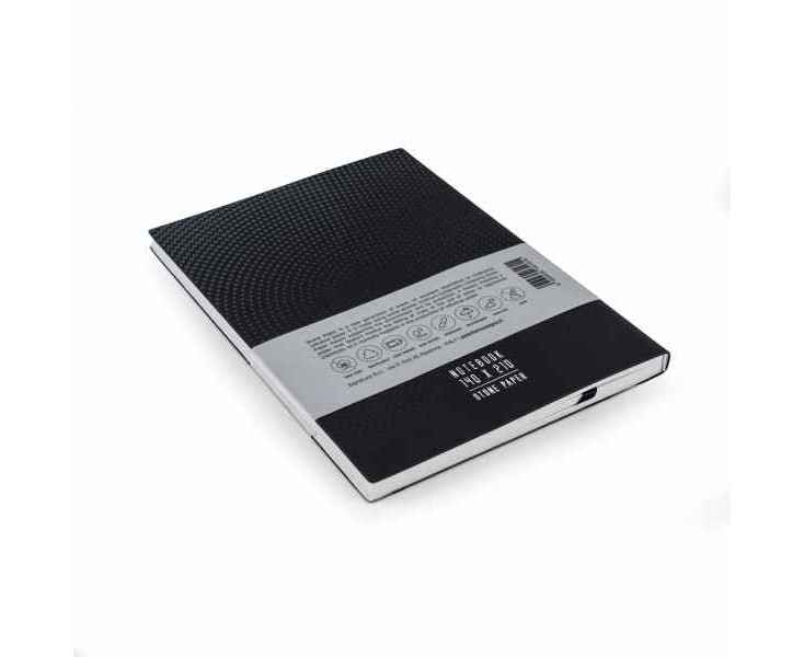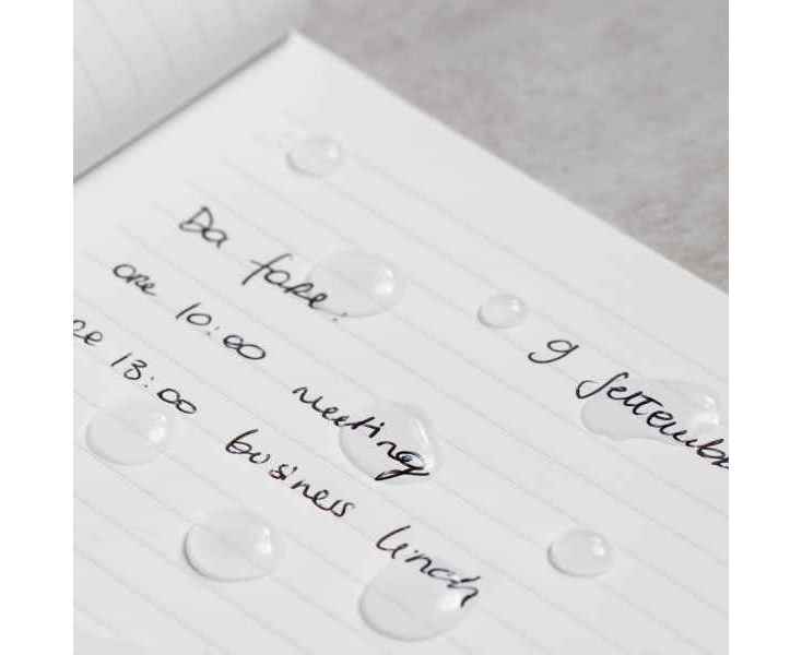 Тетрадь с листами из каменной бумаги. Дизайнеры Pininfarina создали элегантный дизайн для своего идеального дополнения к линейке вечных ручек Pininfarina Segno, так как именно на каменной бумаге они оставляют очень яркий след. Тетрадь размером А5 (14х21 см) в черной мягкой обложке с принтом Pininfarina и черным ляссе содержит 64 листа в линейку. Листы сделаны из каменной бумаги, экологической альтернативы обычной целлюлозной бумаге, которая не требует вырубки деревьев, использования воды и агрессивных химических веществ, тем самым защищая окружающую среду. Она состоит из 80% камня (карбоната кальция) и на 20% из связующего его нетоксичного полиэтилена высокой плотности (HDPE). Это бумага нового поколения с уникальными характеристиками. Каменная бумага на 100% водоотталкивающая, ее можно мыть. Жидкости, включая масло, не изменяют ее структуру, поскольку она не содержит древесных волокон, которые поглощают жидкости, в следствие чего традиционная бумага покрывается пятнами, деформируется и разрушается. Каменная бумага устойчива к разрыву, что также способствует ее долговечности. Она имеет приятный бархатистый эффект и не отражает свет. Плотность бумаги 140 гр/м2. Сделана в Италии.