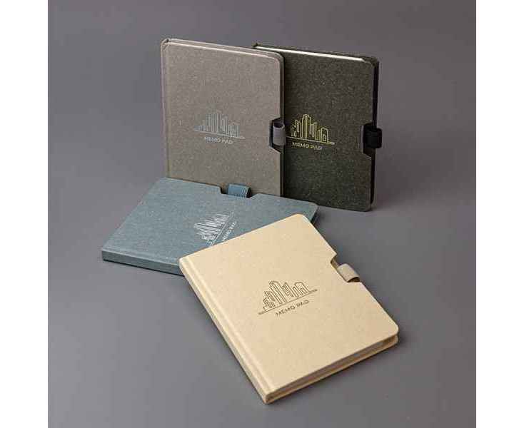 Блокнот,MEMO, размер 130*170 мм, обложка жесткая из переработанного натурального волокна, 80 листов из переработанной кремовой бумаги, ,70 г/м2. Резинка-пенхолдер. Ручка в комплект не входит