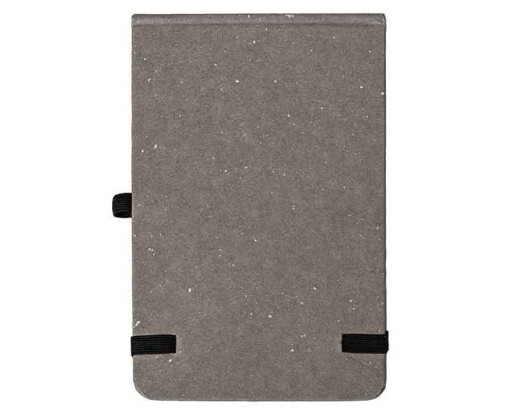 Блокнот MEMO с отрывными листами, размер 90*140 мм, обложка - переработанный картон, 64 листа из FSC кремовой бумаги, 70 г/м2, резинка-пенхолдер и резинка для фиксации. Ручка в комплект не входит.