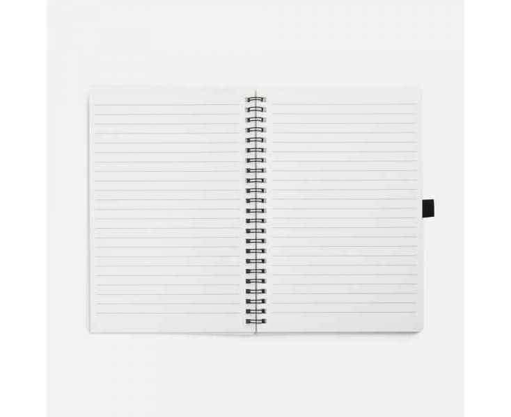 Блокнот из каменной бумаги на пружине с резинкой для ручки.