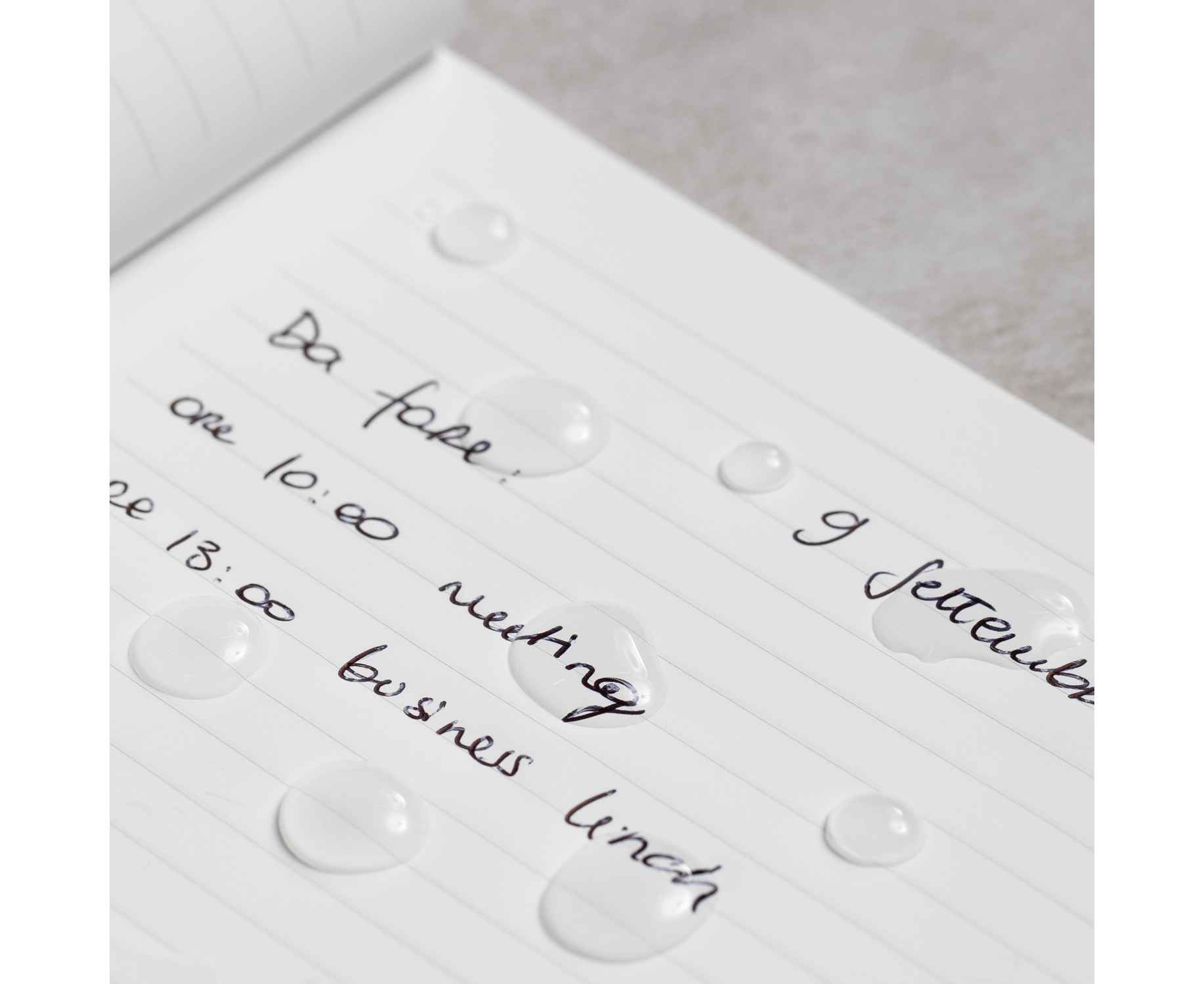 Тетрадь с листами из каменной бумаги. Дизайнеры Pininfarina создали элегантный минималистский дизайн для своего идеального дополнения к линейке вечных ручек Pininfarina Segno, так как именно на каменной бумаге они оставляют очень яркий след. Красная твердая обложка с покрытием soft-touch фиксируется резинкой того же цвета. Тетрадь размером А5 (14х21 см) содержит 64 листа в точку. Листы сделаны из каменной бумаги, экологической альтернативы обычной целлюлозной бумаге, которая не требует вырубки деревьев, использования воды и агрессивных химических веществ, тем самым защищая окружающую среду. Она состоит из 80% камня (карбоната кальция) и на 20% из связующего его нетоксичного полиэтилена высокой плотности (HDPE). Это бумага нового поколения с уникальными характеристиками. Каменная бумага на 100% водоотталкивающая, ее можно мыть. Жидкости, включая масло, не изменяют ее структуру, поскольку она не содержит древесных волокон, которые поглощают жидкости, в следствие чего традиционная бумага покрывается пятнами, деформируется и разрушается. Каменная бумага устойчива к разрыву, что также способствует ее долговечности. Она имеет приятный бархатистый эффект и не отражает свет. Плотность бумаги 140 гр/м2. Сделана в Италии.