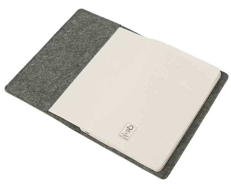 Это портфолио адаптируется под ваш стиль и настроение. Одна сторона — серая экокожа, другая — уютный фетр из переработанных материалов. С обеих сторон вы найдёте карманы для мелочей и петли для резинки. Внутри — сменный блок из 80 листов кремовой бумаги с ляссе, что делает его удобным и практичным.