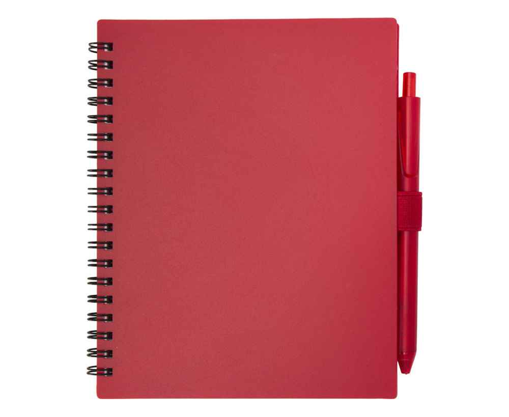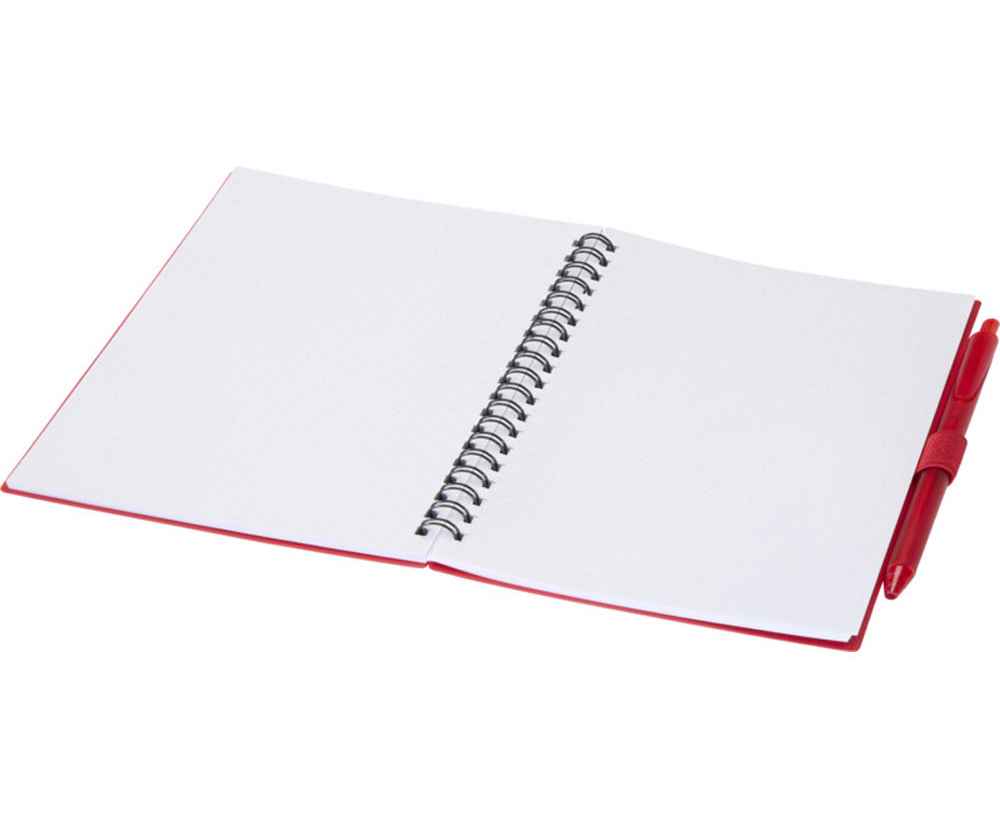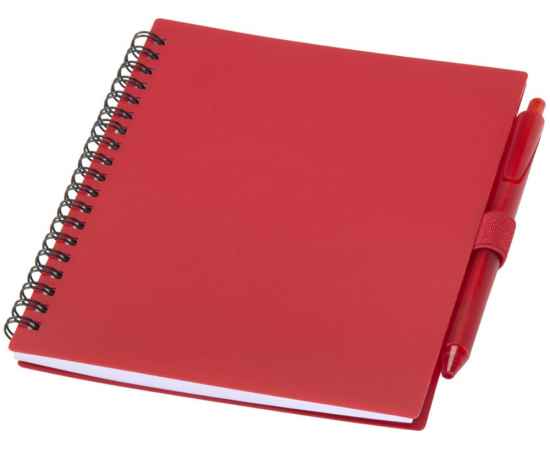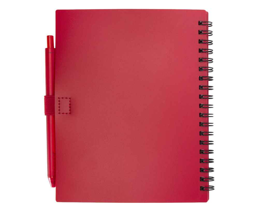 Блокнот Niove с мягкой обложкой изготовлен из переработанной пластмассы, имеет 70 нелинованных листов из бумаги плотностью 70 г/м². Блокнот имеет квадратные углы и петлю для ручки. Размер блокнота: 140 х 178 мм. Шариковая ручка также изготовлена из переработанной пластмассы. Цвет чернил: синий. Длина непрерывной линии: 1000 метров. Диаметр пишущего узла: 1,0 мм.