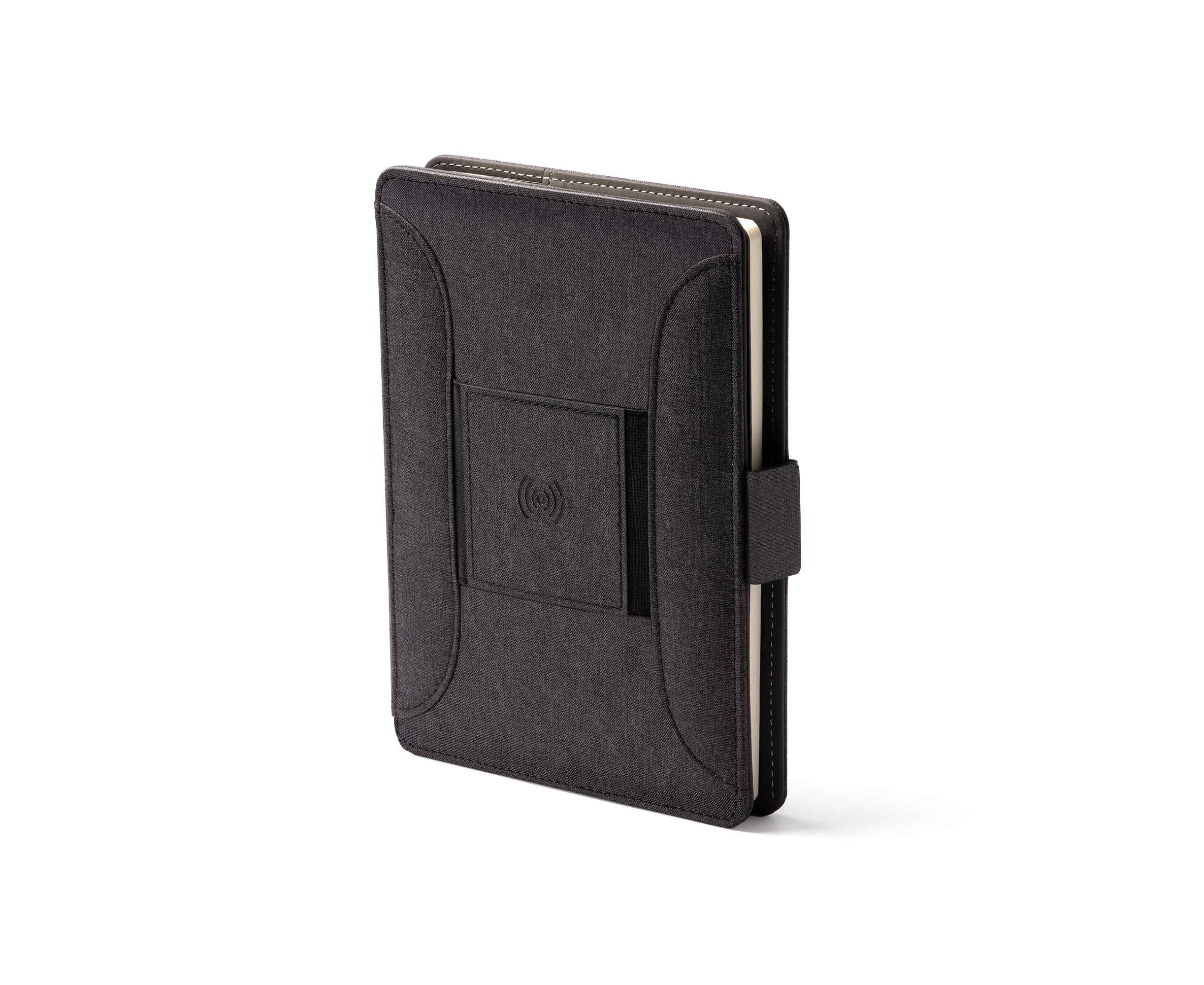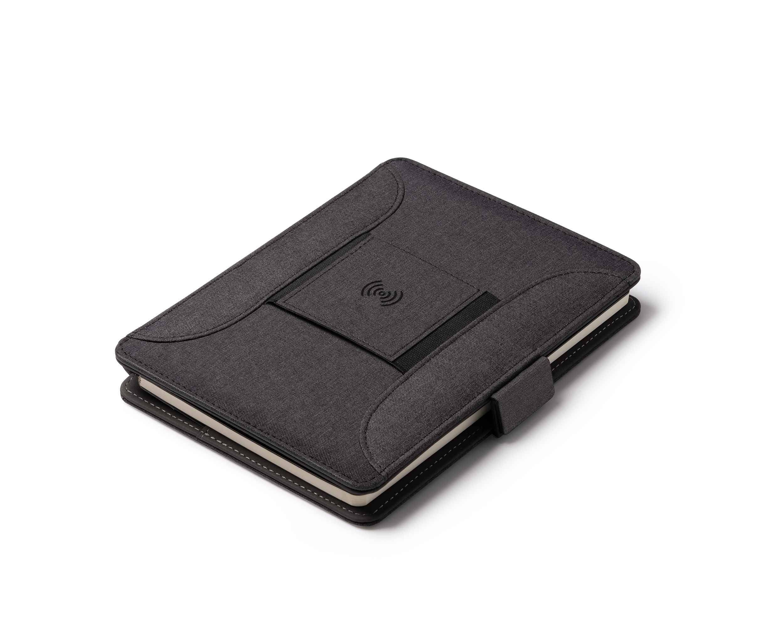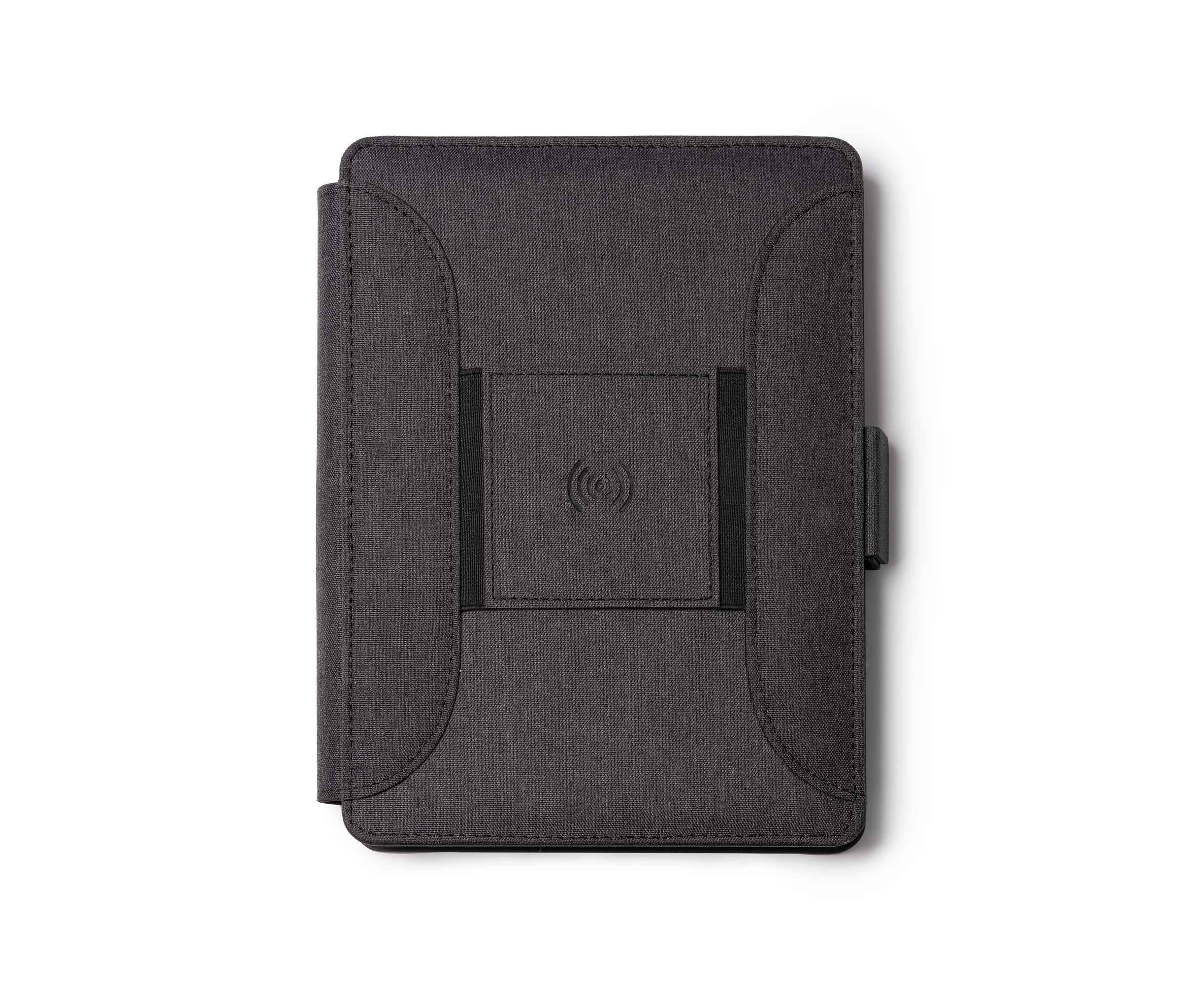 Многофункциональная папка формата А5 RPET 300D — универсальный и практичный аксессуар, позволяющий систематизировать документы. Магнитный замок, беспроводная зарядка, съемный блокнот на 56 листов, кармашек для мобильного, держатель для карт, ручек и мобильного. Кроме того, в комплект входит кабель с 3 входами (тип C и выход USB)
