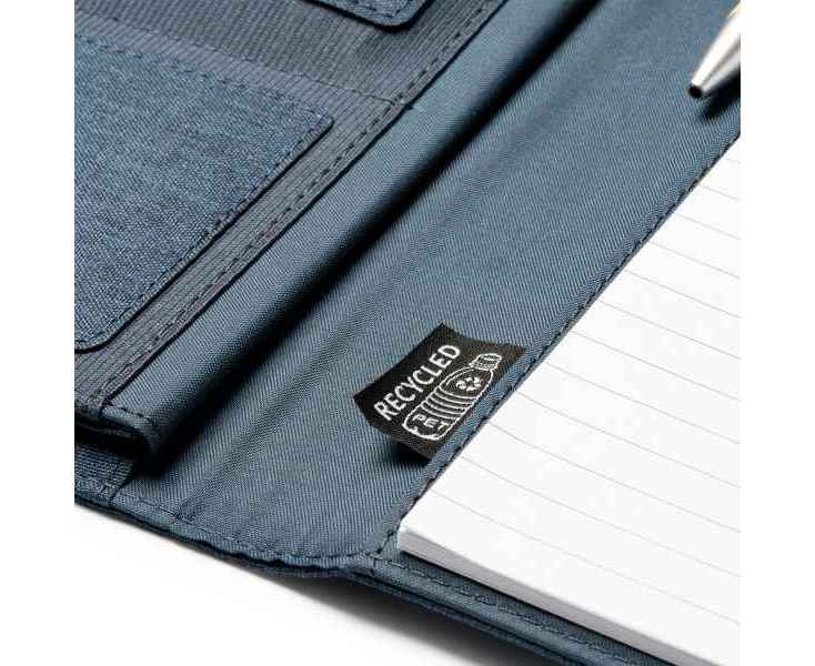Универсальная папка А4 изготовлена из переработанного пластика и оснащена магнитной застежкой. В комплект входит съемный блокнот на 30 листов с подкладкой, обеспечивающий удобство записи. Папка также имеет 4 внутренних кармана для хранения документов и аксессуаров, а также держатель для ручек, что делает ее функциональным и экологичным выбором для офиса или учебы.